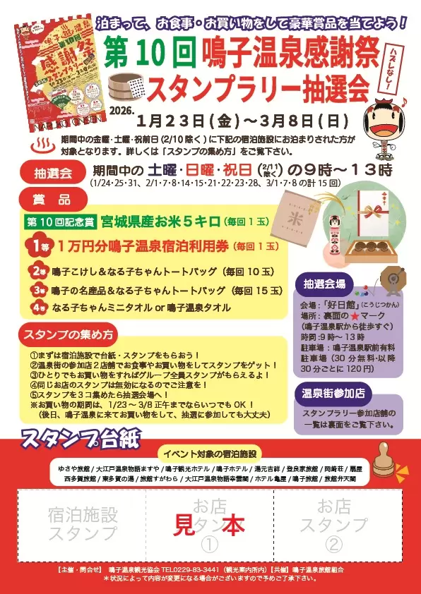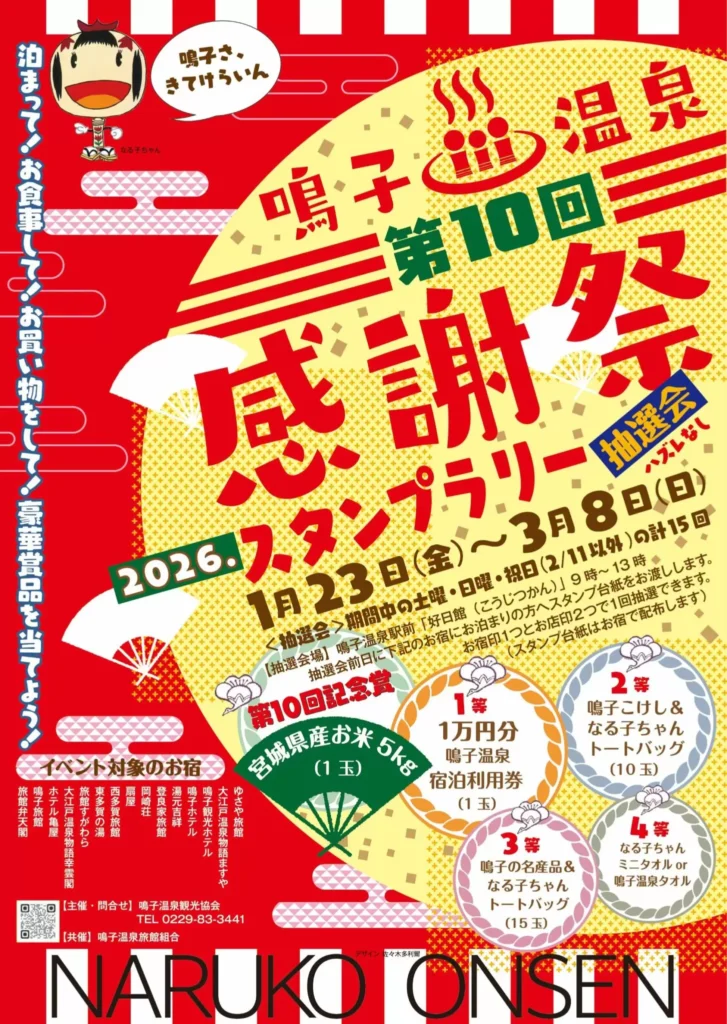 「鳴子温泉感謝祭2026」スタンプラリー抽選会を開催します。