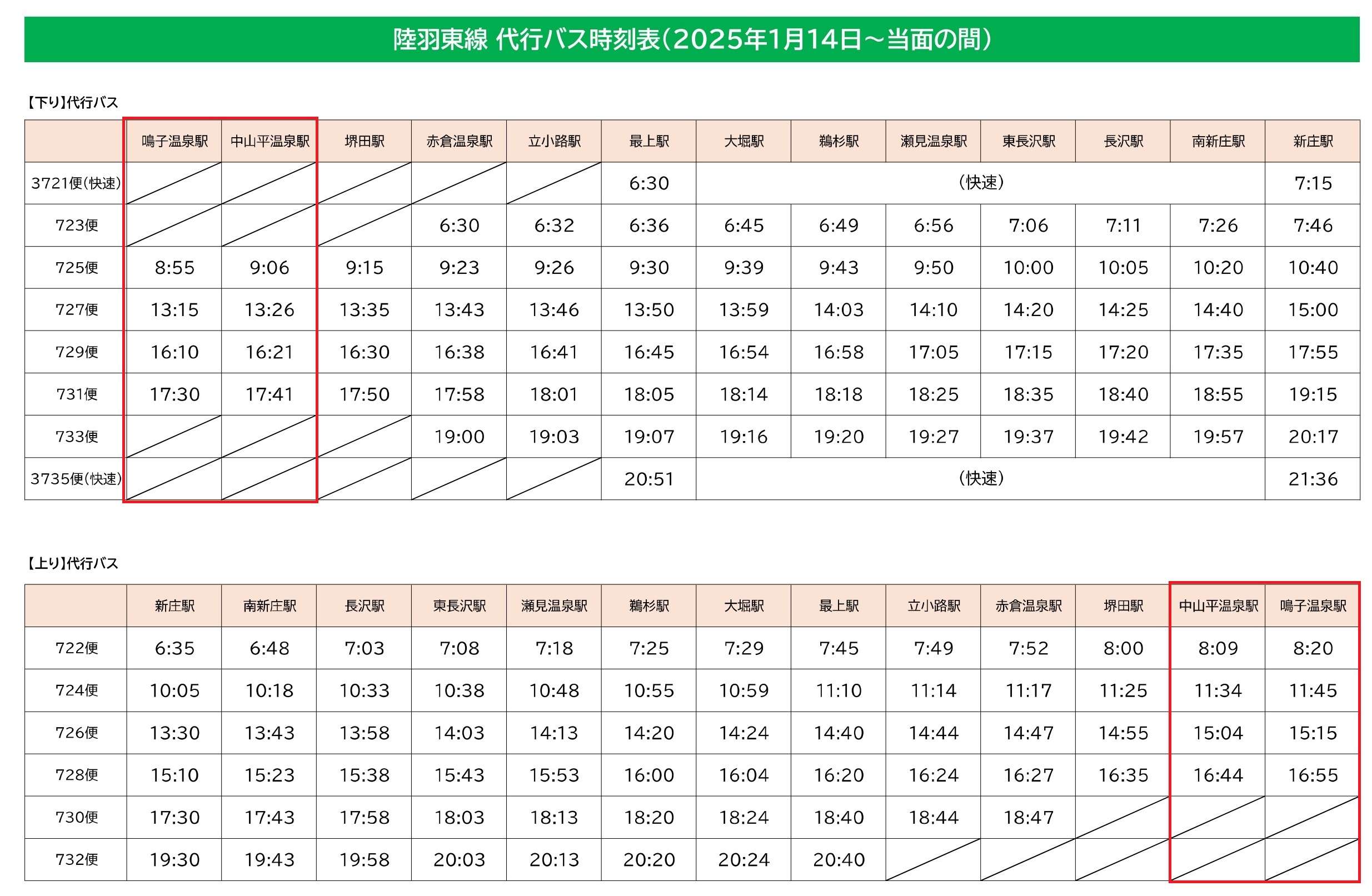 JR陸羽東線代行バス(鳴子温泉~新庄)